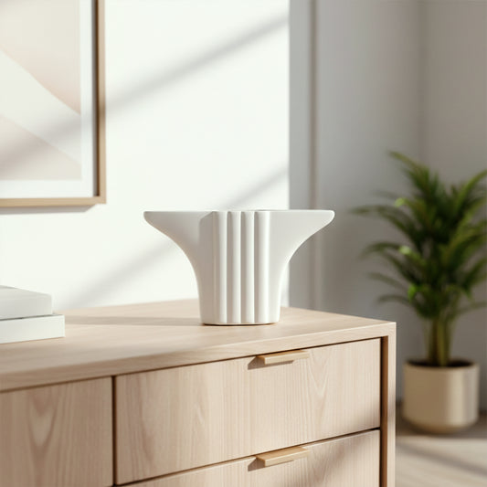 Minimal ceramic decor object featuring a wide flared pedestal silhouette with subtle vertical ribbing and a smooth matte white finish. Designed as a sculptural accent rather than a functional vessel, this piece adds balance and...Regular price Rs.2,040Sale price Rs.2,040 Regular priceUnit price / per -